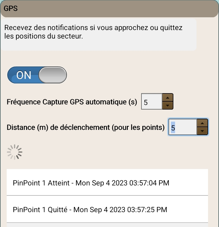 Pour cela, activez la fonction, déterminez la fréquence de capture de votre position GPS et la distance de déclenchement. Les alertes Android seront alors générées et également affichées dans la liste.